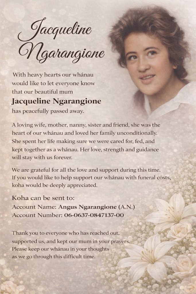 Rest in eternal love with our Tipuna Mum, you will be greatly missed by many.